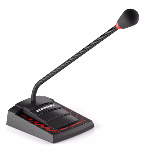 Пульт громкого оповещения STELBERRY F-701 оснащён направленным HD-микрофоном с защитой от электромагнитных помех.